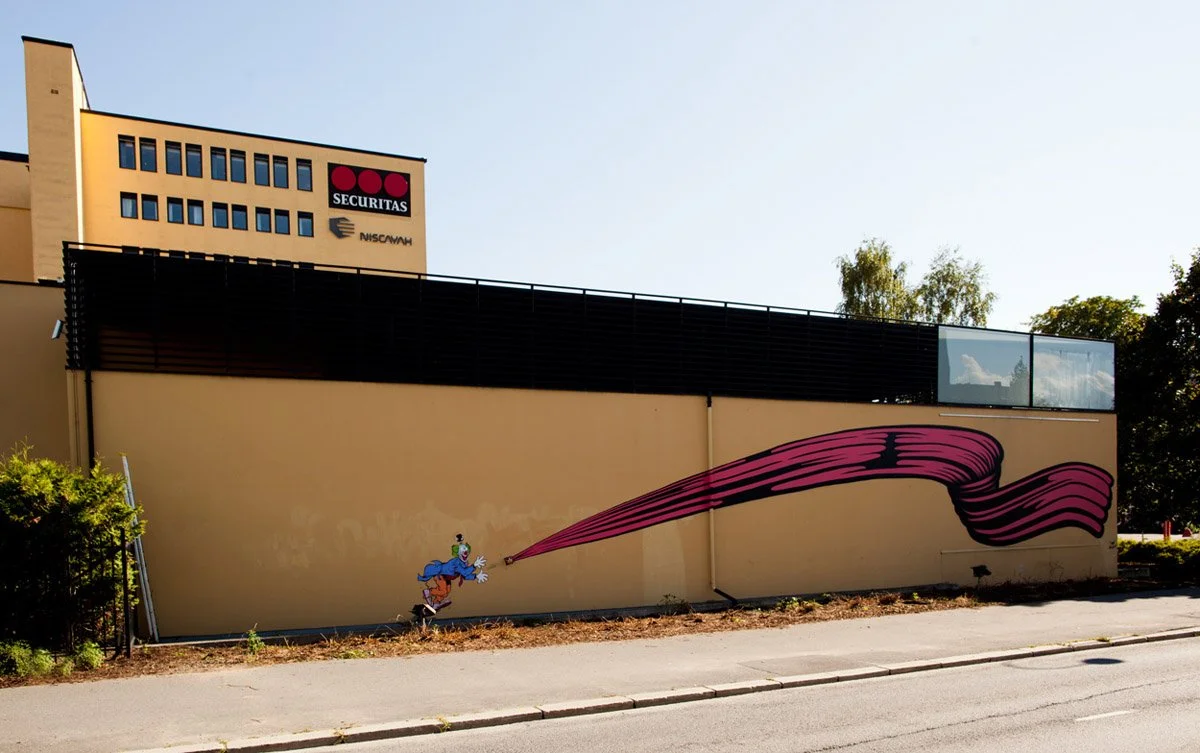 Den Britiske streetart kunstneren D*Face malte dette veggmaleriet på Grønland i Oslo under streetartfestivalen TJ Artwalk som ble arrangert i 2011. Festivalen inviterte flere gatekunstnere – men ingen graffitikunst var å se. Foto: Privat
