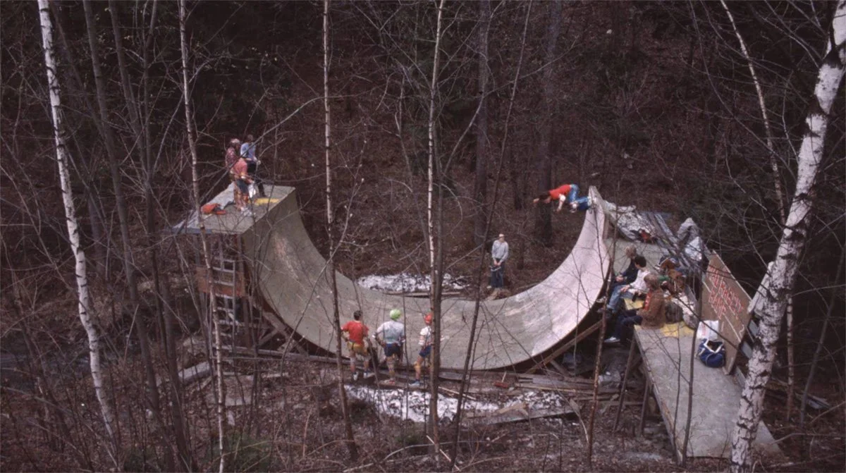 Denne skaterampen ble bygget i hagen til Anders Wittusen i Arnebråtveien i 1981. På bildet er det Lars-Petter Lunder som skater, våren 1982. Foto: Anders Wittusen