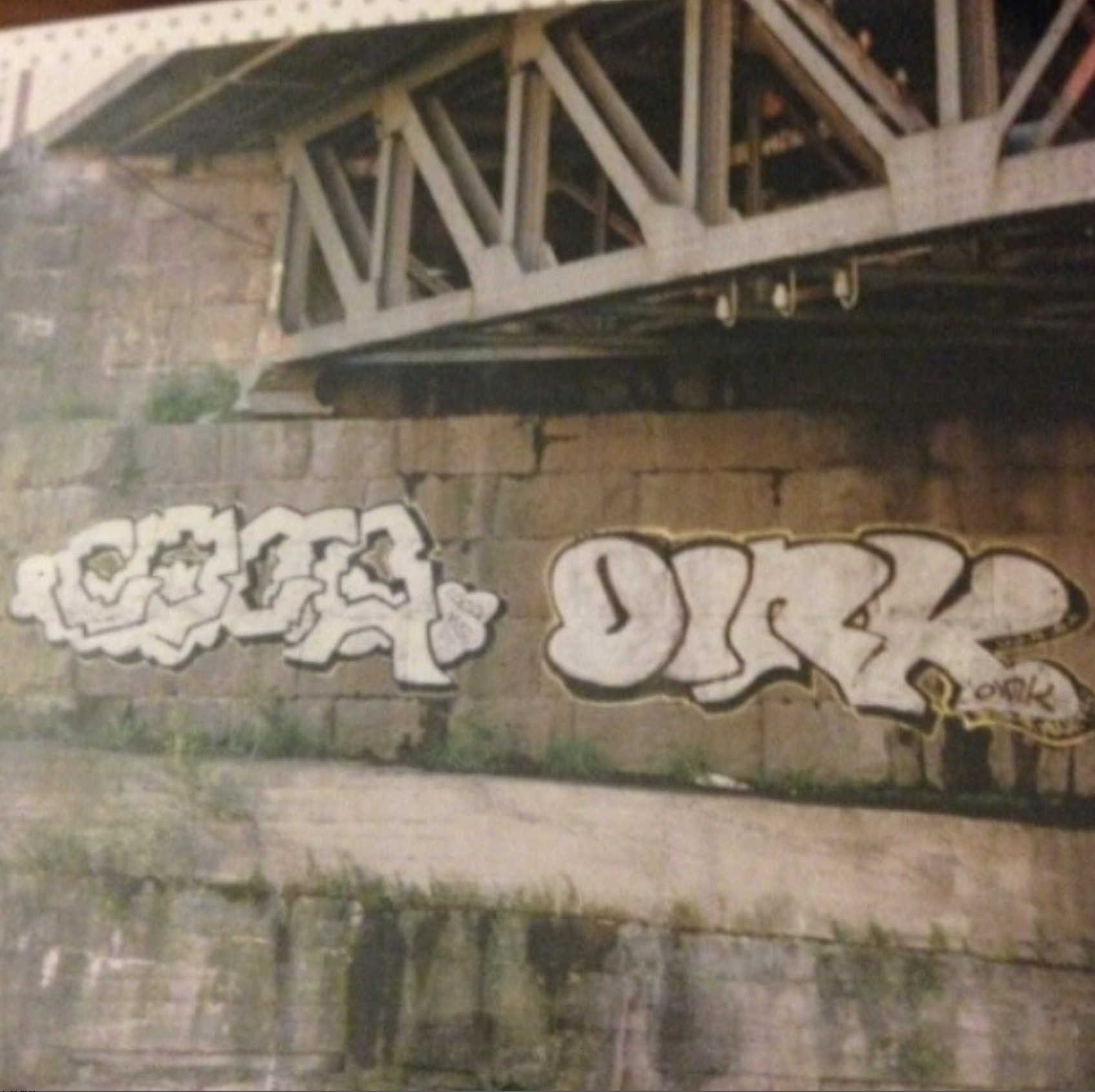 Piecer av Soda og Ridder langs Akerselva i Oslo, 1999. Foto: Gard Andreas Frantzsen, Gategallerier.