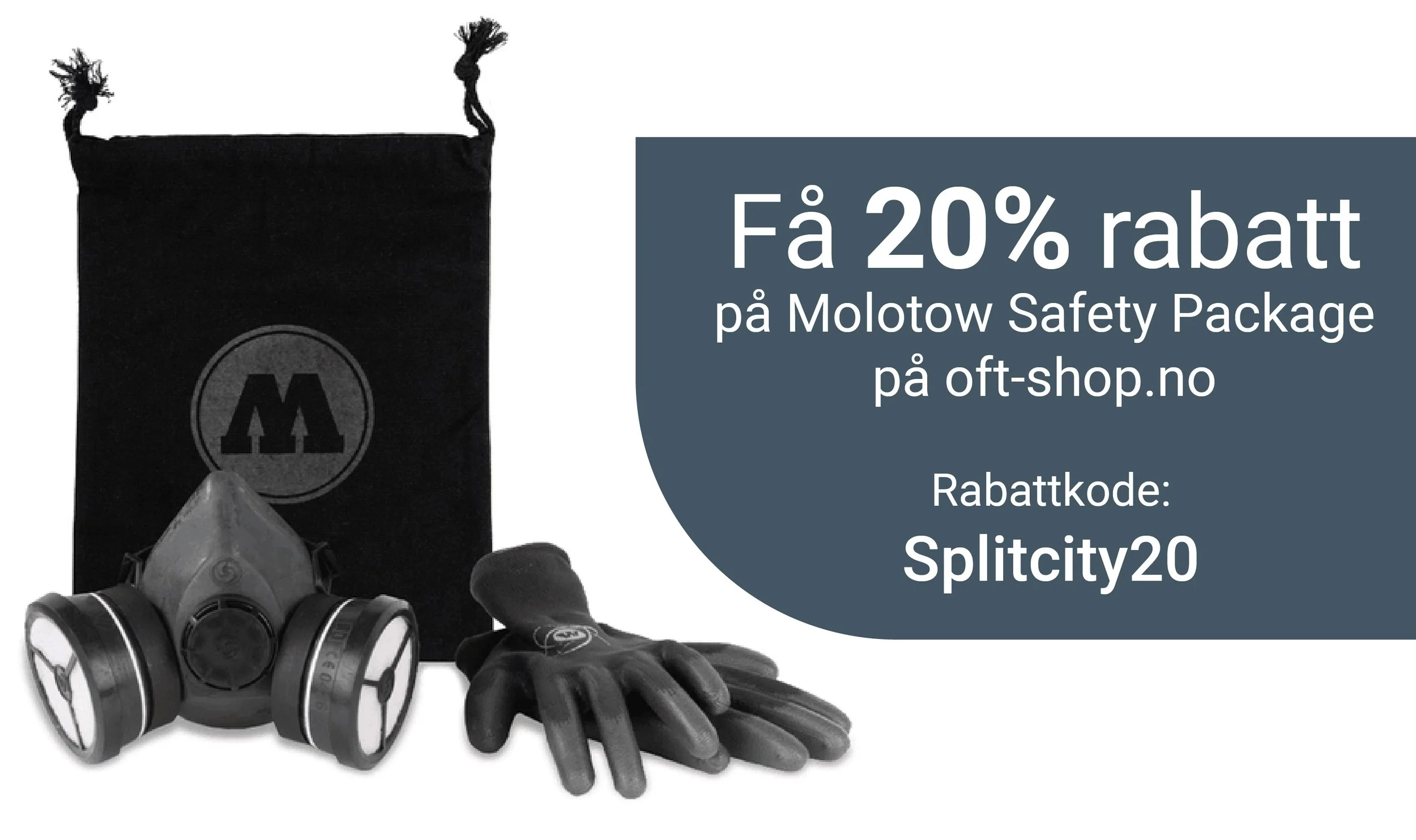 Bruk SplitCity rabattkoden: Splitcity20 i nettbutikken til Oslo Farge og Tusj og å få 20% avslag på Molotow Safety Pack som inneholder en A1-P1 vernemakse og et par hansker.