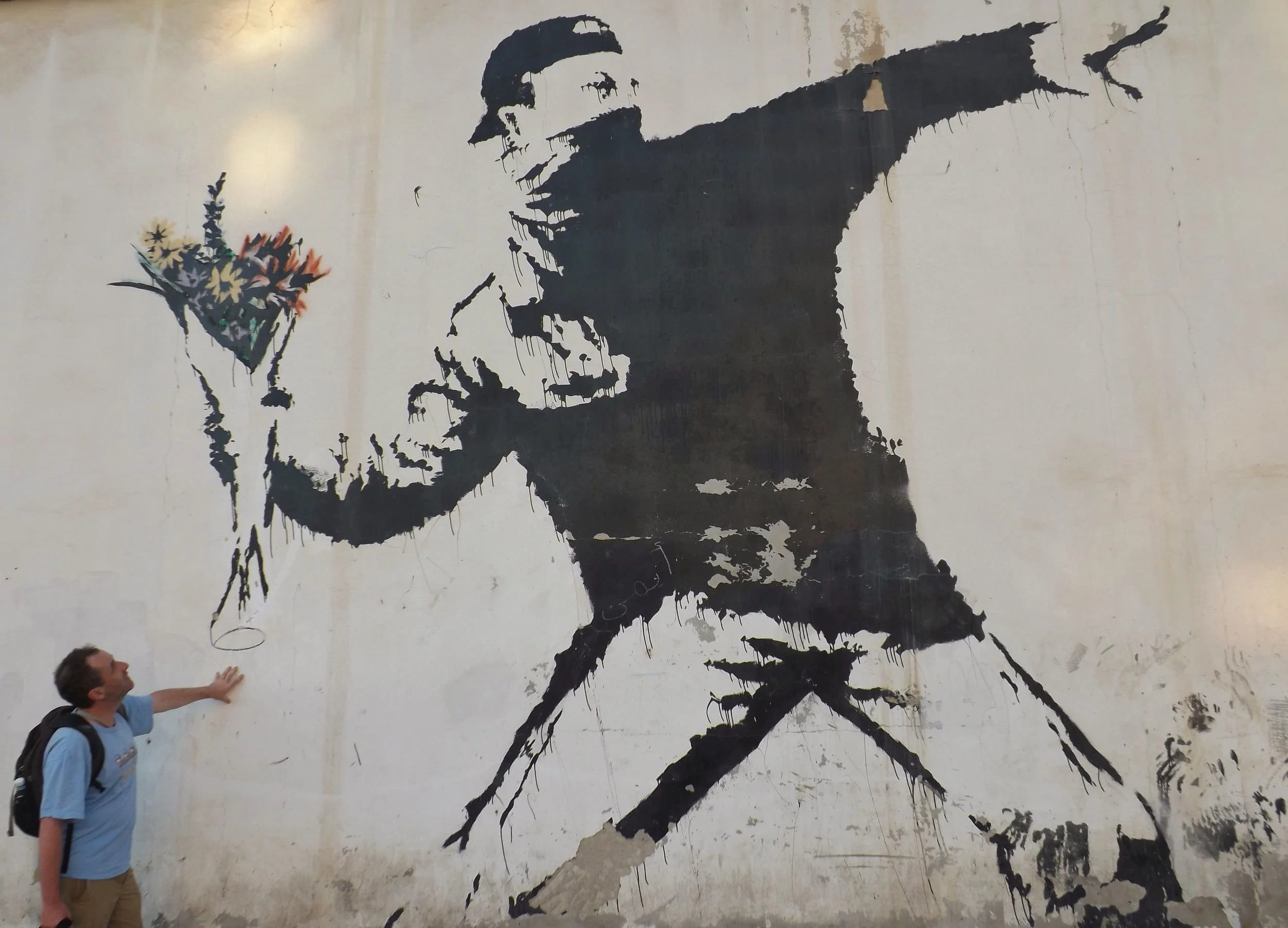 Flower-throwing protester, Banksy. Foto/kilde: Wikipedia. Bildet brukes under prinsippet om fair use for kritikk og kommentar.