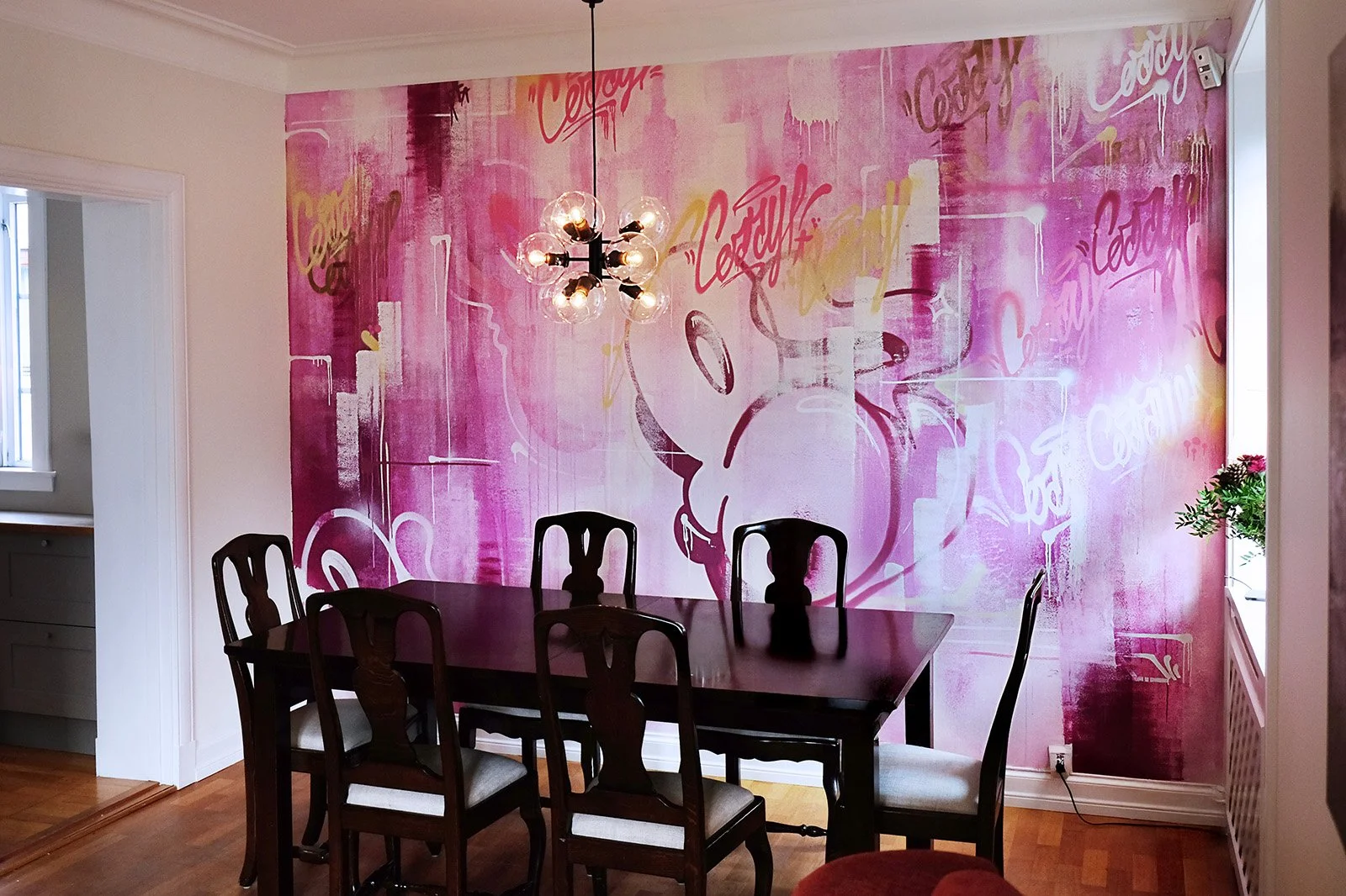 Graffitikunst av Eric Ness Christiansen i en privat stue på Frogner i Oslo